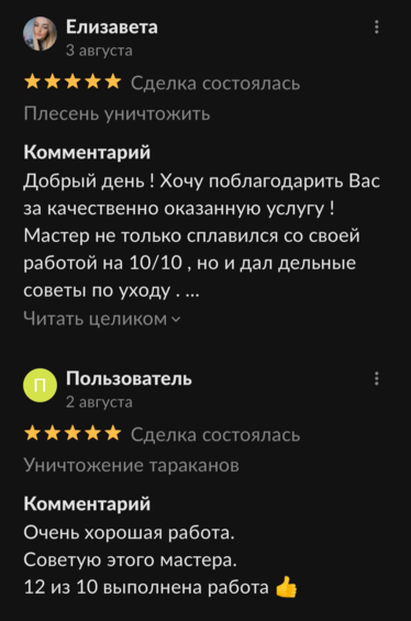 Стоимость обработок от 499 руб.